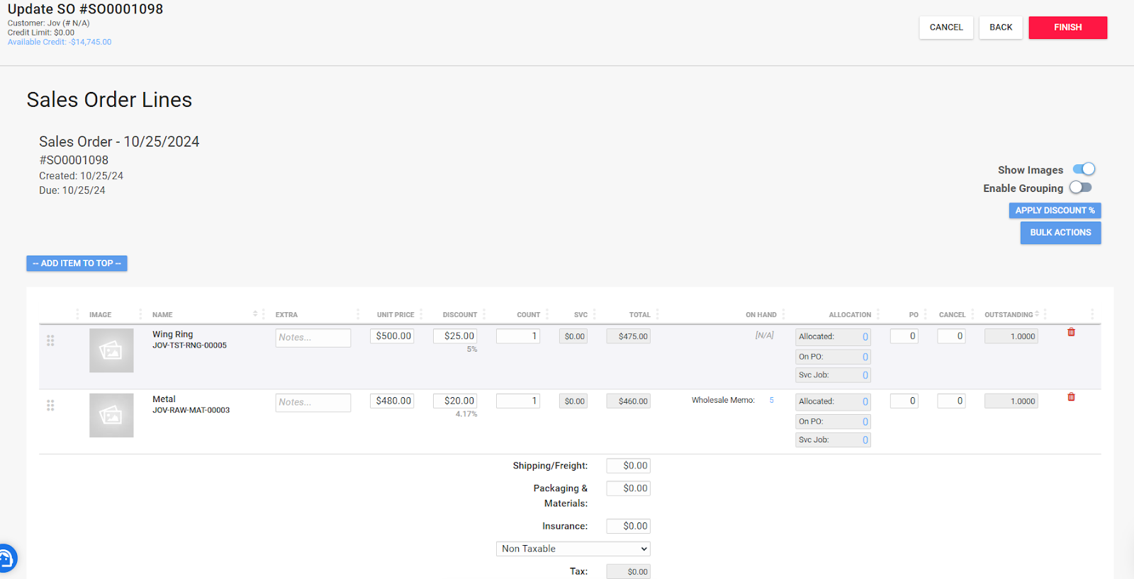 This includes adding descriptions, changing unit prices, applying discounts, or adjusting item quantities as needed
