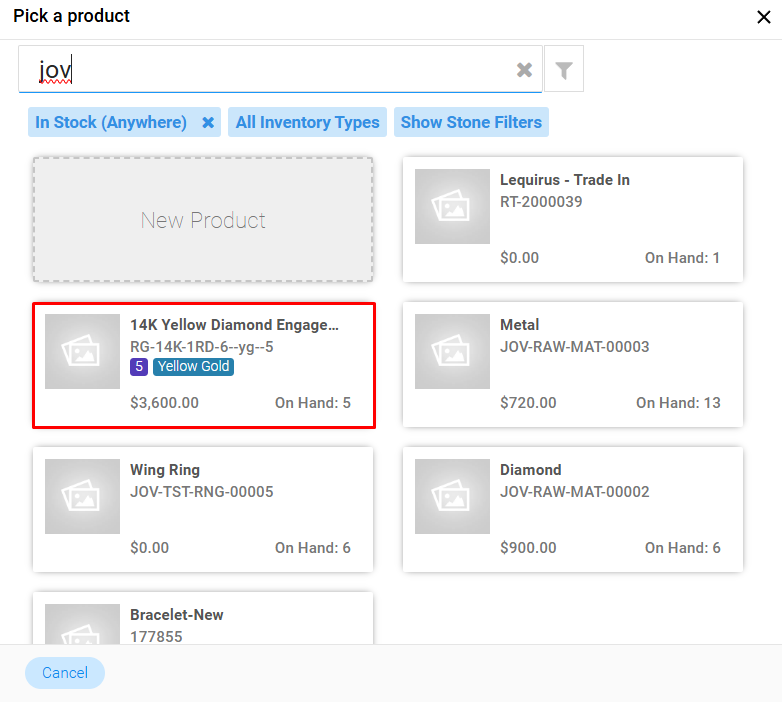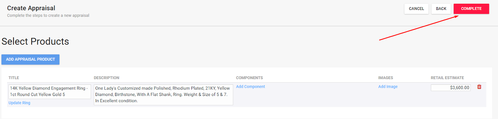 Choose the product you want to appraise (e.g., Yellow Diamond Engagement Ring)