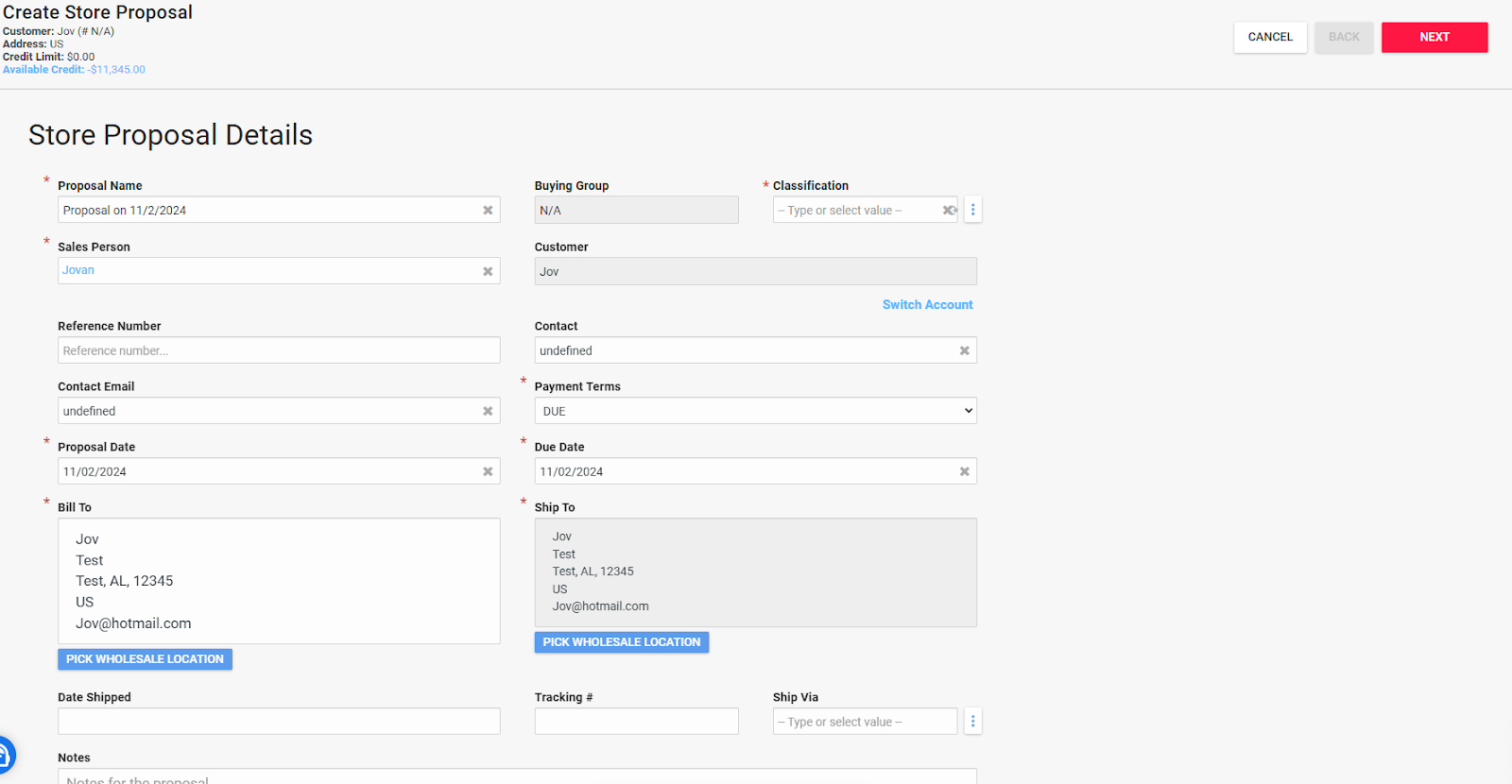 Wholesale Proposal: Create a wholesale proposal for the selected items.