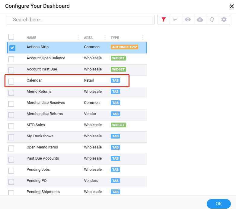 Enable the Calendar Tab by clicking on the Cogwheel button located at the top right corner of the screen.