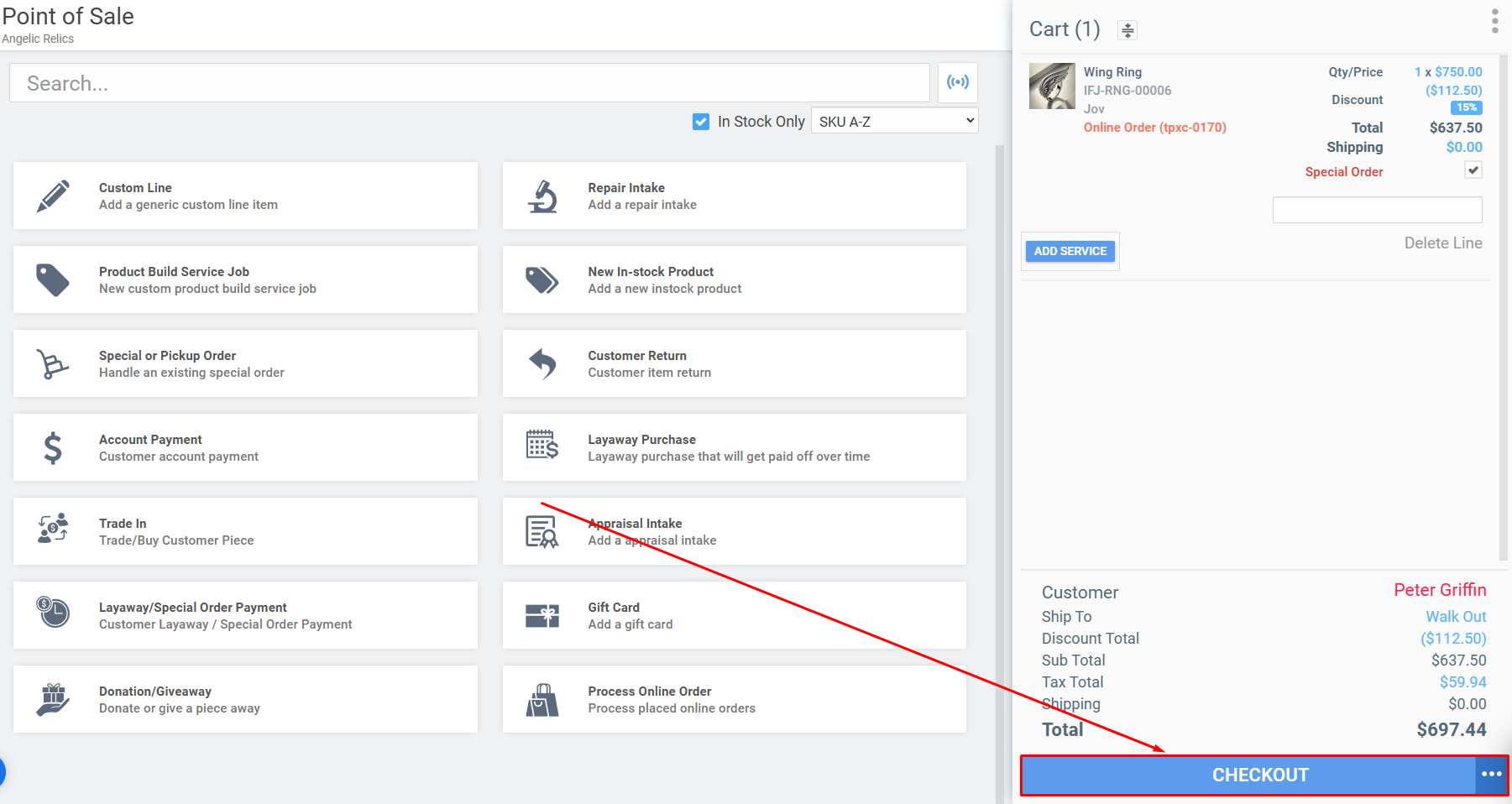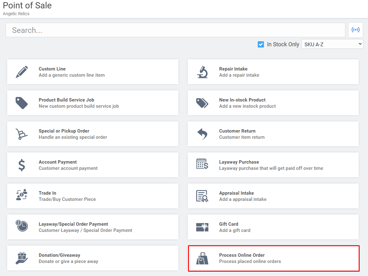 In Stock: Allocates items from your current stock (only visible if the item is in stock).
