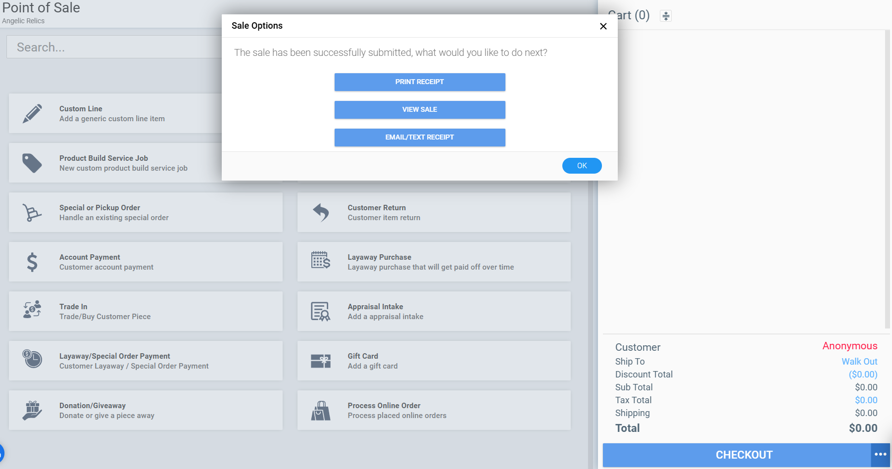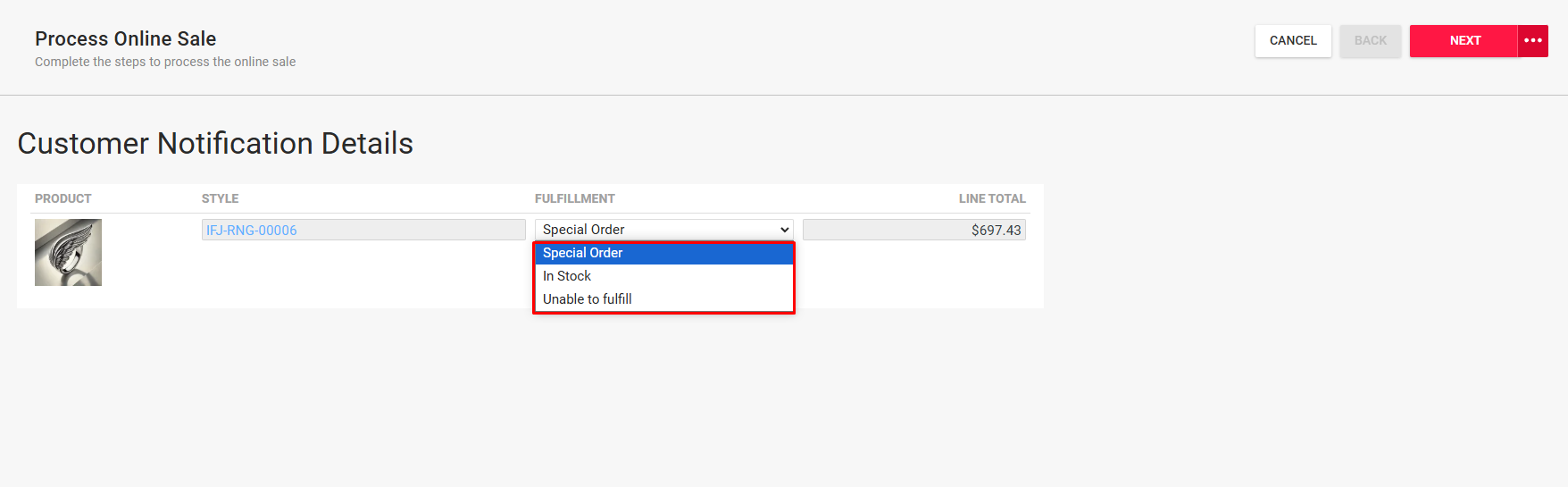 In the Process Online Sale section, select how you wish to fulfill the order: