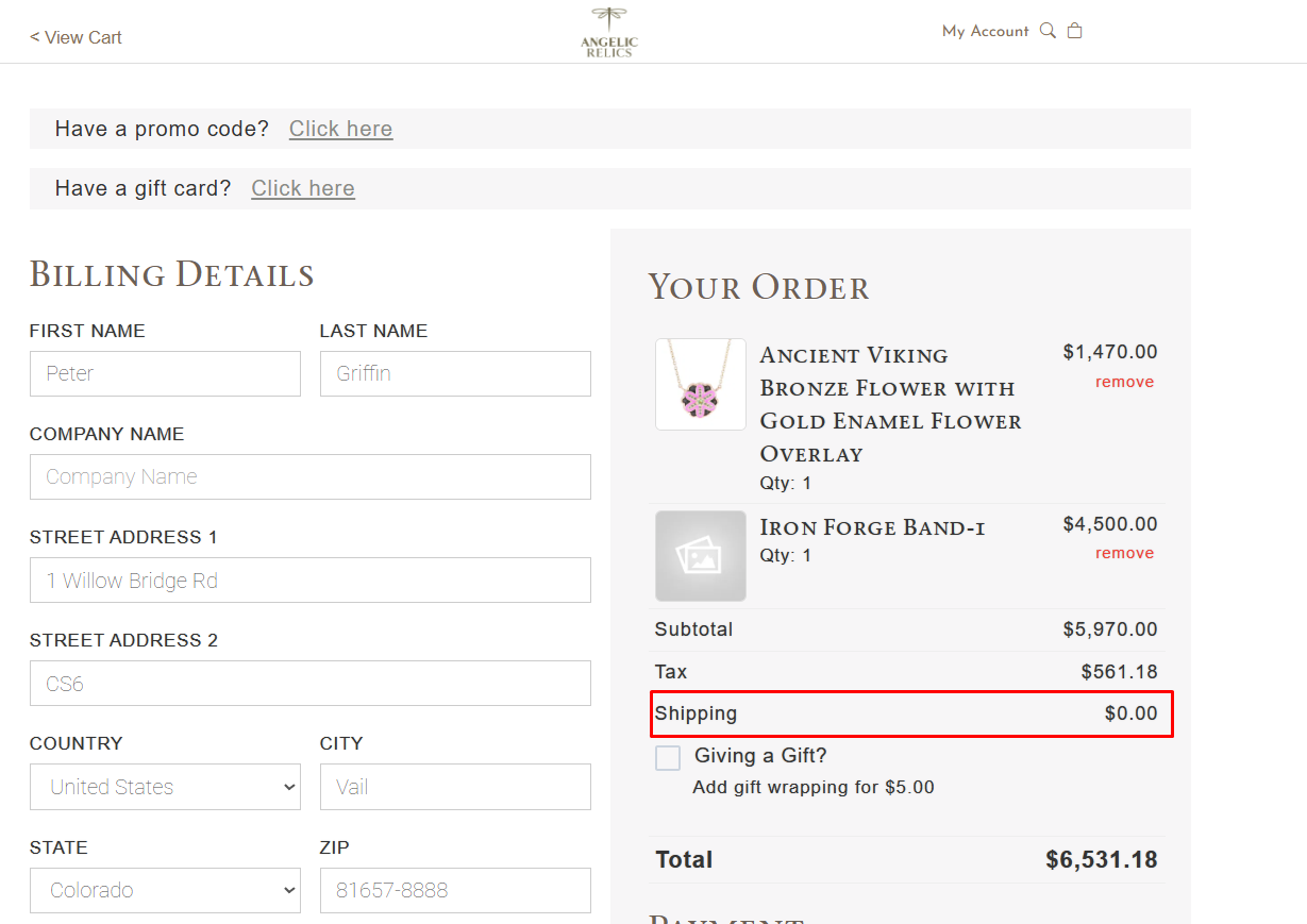 Based on the example above, the cart currently has a shipping fee of $0 due to the product being tagged under IFB-1 which is defined in the example as free shipping.