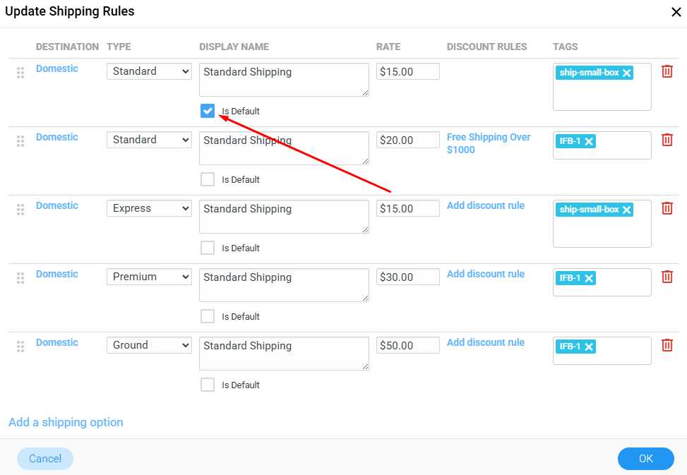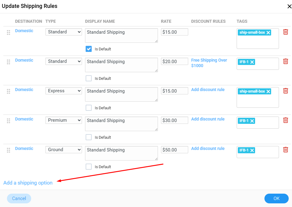 Click Add a shipping option at the bottom-left of the window to create a new rule.