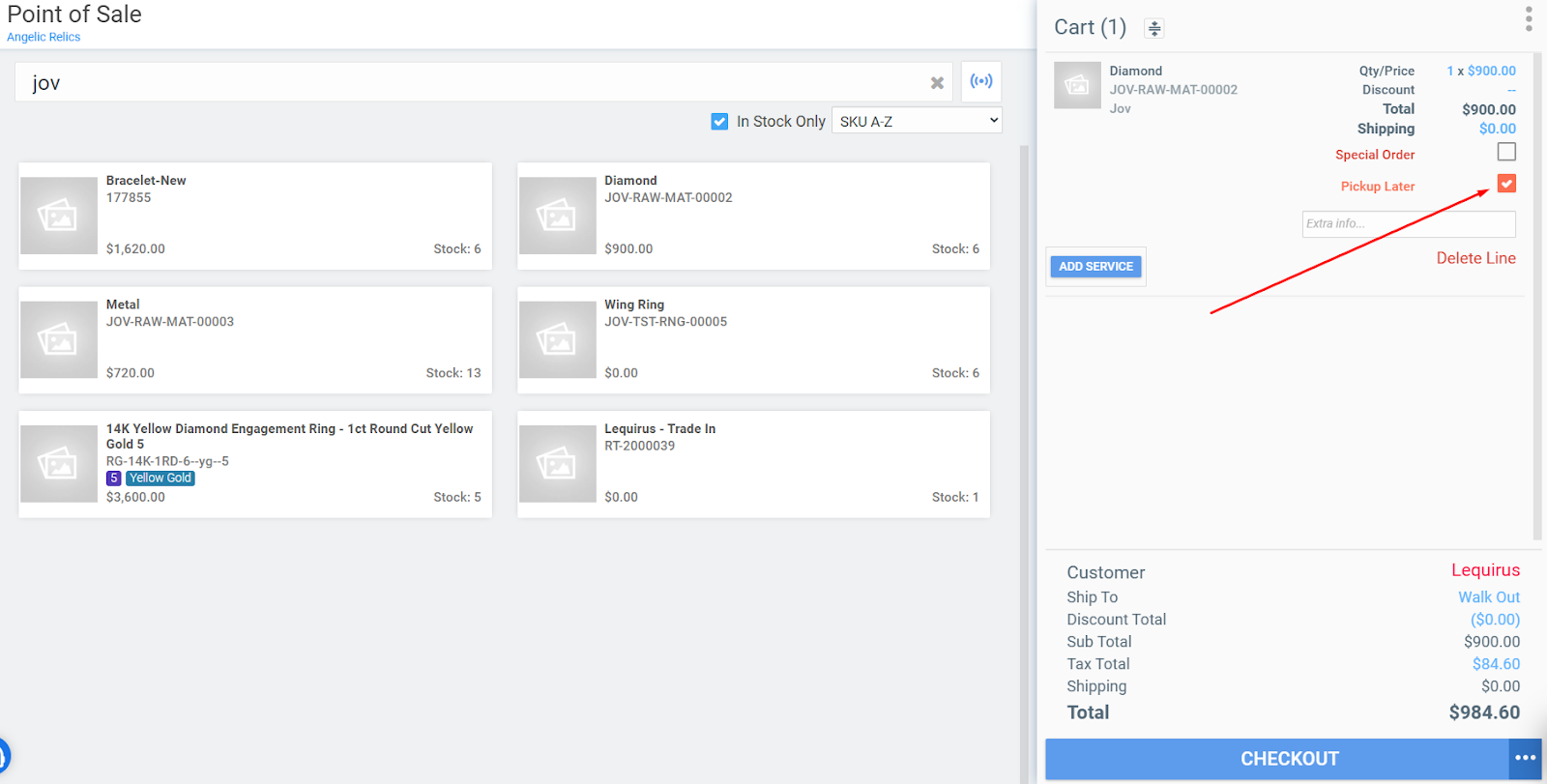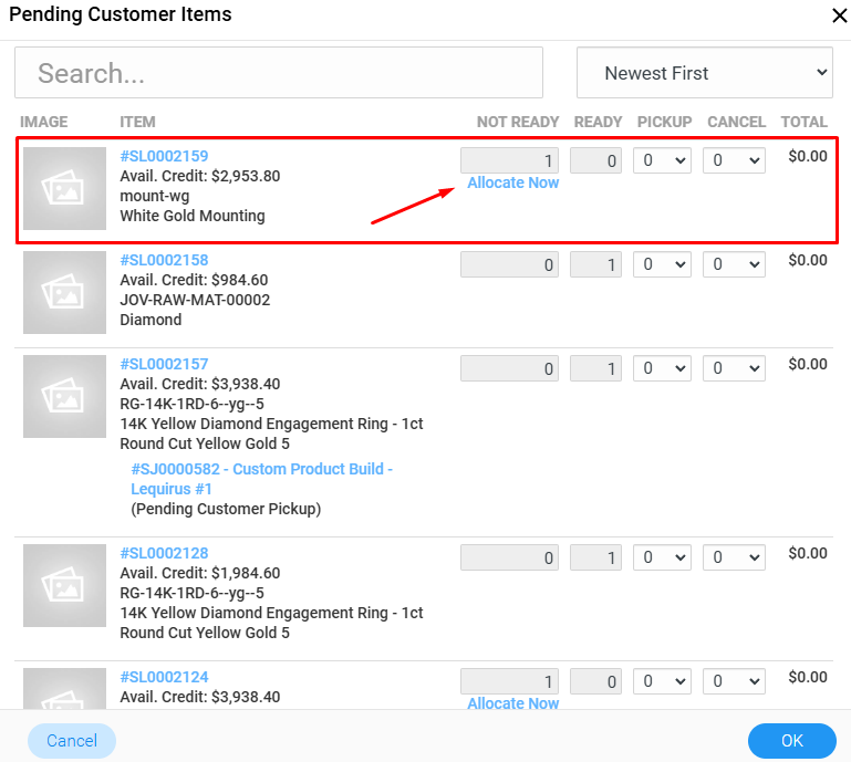 1. Create a "Pick Up Later" Order for the Initial Item