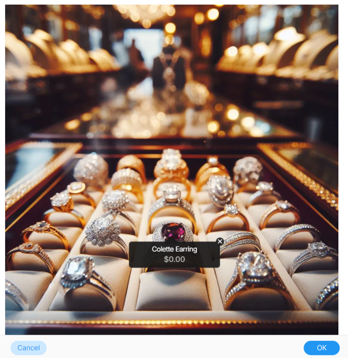The popup will display clickable tag dots on the image.
