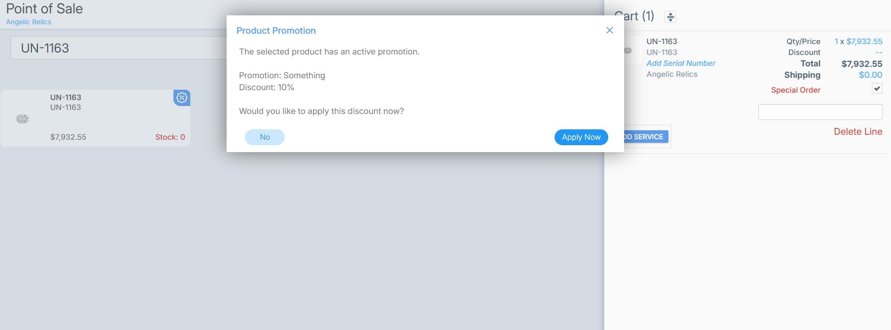 When a customer checks out in-store, Flawless will automatically detect if a scanned/selected item qualifies for an active promotion.