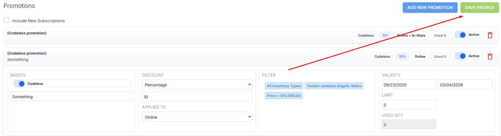 Once everything has been filled out, don't forget to click on the Save Promos button to save the promotion.