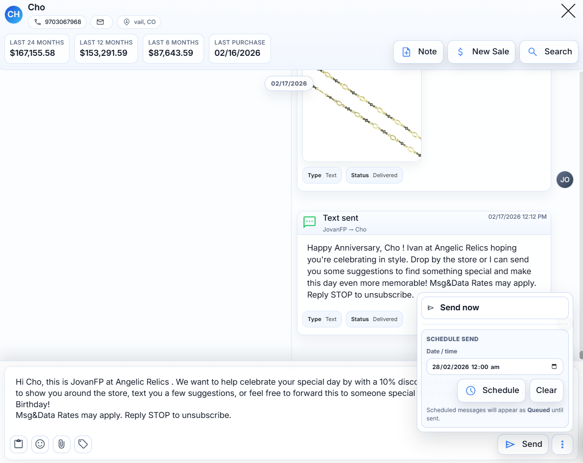 Use the new scheduling feature to plan communications in advance. Prepare your email or text message, then set a future date and time for it to be sent.